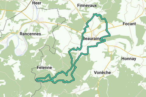 Baronville Les Grandes Loires - Sevry - Javingue - Bois du Roi (Sev) - Felenne - Houille - Bois du Roi - Sevry - GR le long du Castel (Beauraing) - Bois d'Uchy - Retour vers Maisoncelles