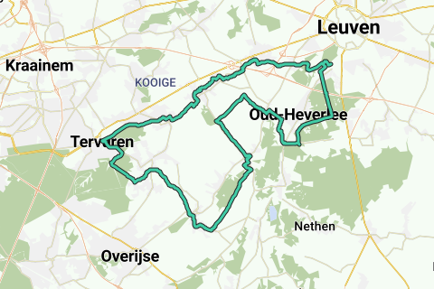 Vous garez la voiture dans la Jules Vandenbemptlaan derrière le Lodge à Heverlee (75). Via le château d’Arenberg (13) nous passons par Bertem (14) à Leefdaal (18) (19) (45) et Terveuren, passé le Musée du Congo (petit saut latéral) (46) (60), à travers la forêt de Soignes.Via (25)(57)(27) nous arrivons à Huldenberg pour tourner un peu plus loin (7) pour rejoindre Neerijse à travers les bois. Nous continuons notre chemin à travers les champs et les forêts(3)(2) pour pédaler via Korbeek-Dijle sur les eaux de Zoete(1) à travers les forêts de Heverlee(76) jusqu’à notre point de départ(75).