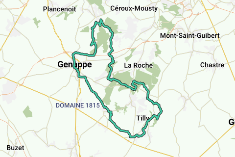 Départ du Maillon direction le Bois de Sart des Dames ensuite vers Genappe. Après Genappe direction Sart-Dames-Avelines pour arriver à l’extrême du parcours Marbais et puis retour via les bois de Villers-la-Ville. Un parcours de 41km avec 600 de dénivelé positif.