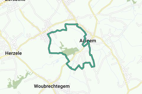 Rendez-vous à l'église Saint-Nicolas d'Aaigem (Erpe-Mere), Aaigemdorp, en face de "Het Aaigems cafeetje". Le clocher restauré date de la fin du 13ème siècle. Marchez depuis l'église via le café Aaigems en direction de Ratmolenstraat et tournez à droite en descente jusqu'à Kosterweg. Prenez à gauche Kosterweg et continuez tout droit jusqu'à passer le petit pont sur la Molenbeek (Erpenbeek). Continuez tout droit jusqu'à D’Hoeve et là, continuez toujours tout droit sur le chemin de champ. Suivez le chemin jusqu'à peu avant Dekkersveld (B&A Technics) et tournez à droite. Regardez en arrière en direction de l'église du village. Encore à droite et suivez le chemin à gauche et vous arriverez à Driepikkel. À Delestraat, montez à gauche. Au niveau de Zakveldweg, continuez à gauche sur Delestraat en montée jusqu'à Aaigembergstraat. Vous remarquerez la chapelle rénovée de Saint-Antoine. Continuez à droite sur Aaigembergstraat. À une vieille ferme, tournez à gauche dans Eekhout. À droite, vous voyez un chemin étroit entre les prairies. Tournez là à droite. Devant nous, nous avons à nouveau une belle vue sur le paysage vallonné. À la fin du chemin, tournez à droite le long de la route en béton et tournez ensuite à gauche dans Lammersweg. Sur le pont au-dessus de Molenbeek (Erpenbeek), vous remarquerez à gauche un bassin de retenue. Ce bassin doit prévenir les inondations en aval. Continuez le chemin de gravier jusqu'à Otterkant sur le territoire de Ressegem (Herzele). Prenez la route asphaltée à droite. À droite, vous voyez une manège. Attention : un peu plus loin au virage à gauche, vous entrez tout droit dans le chemin. Vous passerez maintenant près d'une chapelle O.L.V. Continuez tout droit le long de Goezestraat et tournez un peu plus loin à droite dans Paddenhoek. Allez tout droit dans Paddenhoek vers Wijngaardbos. Vous marchez maintenant le long de la forêt jusqu'à un embranchement en T. Là, tournez à gauche le long du bord de la forêt. De là, vous avez à nouveau une belle vue sur Aaigemdorp. Continuez le long du chemin en gravier et tournez à droite en descente. Nous arrivons à Ashage avec à la fin une chapelle (Saint Joseph) et un monument pour l'équipage d'un Liberator qui s'est écrasé dans les environs (1944). Là, vous tournerez deux fois à droite via Opaaigem vers Populierenstraat. À la fin (chapelle Saint-Roch), tournez à droite (Vijaverage). Un peu plus loin, vous trouverez un chemin en pavés de béton. Tournez à gauche. Arrivé à Griet, tournez à droite et un peu plus loin à gauche le long d'un chemin en béton (‘t Onderhof). Le chemin en béton débouche sur Ratmolenstraat. Tournez à gauche en montée là-bas vers OC Aaigem (ancien hôtel de ville). À la fin de Ratmolenstraat, vous êtes de retour au point de départ.
