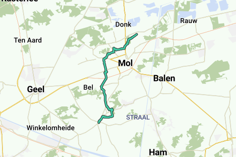 Après Mol, tu traverses la Molse Nete en direction de la Grande Nete près de Meerhout. Même si tu traverses une grande partie de Mol, l'itinéraire n'est pas du tout ennuyeux. Tu seras surpris de voir à quelle fréquence tu découvres de petits chemins détournés. Là où tu passes devant des maisons et des entreprises, il est très agréable de voir la diversité de l'architecture moderne des bâtiments. Cela vaut aussi pour Mol. En chemin à Eezaat, tu peux prendre un verre au café IET AANDERS. Juste avant Meerhout, tu suis la Grande Nete jusqu'au moulin à eau, pour ensuite "te faufiler" vers le centre. À Meerhout, l'itinéraire se termine à l'église St. Trudokerk. Malheureusement, l'église n'est pas toujours ouverte, donc tu dois apporter une bougie pour y brûler.