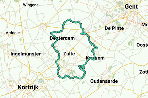 Un départ calme et beau rond à Deinze. Cet itinéraire se dirige d'abord vers Kruishoutem et Nokere. Ici, il y a quelques pentes et de belles routes. Après la partie un peu plus intense, nous roulons via Waregem en direction de Tielt. Dans cette partie, l'itinéraire longe des routes plutôt plates et tranquilles avec vue sur de nombreux champs. Une recommandation pour tout le monde. Un parking gratuit est disponible au début et à la fin du parcours.