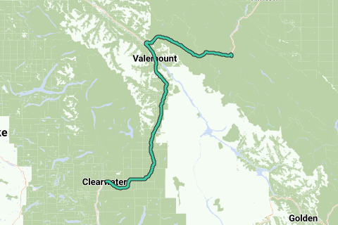 Cet itinéraire vous emmène de Clearwater (Parc provincial Wells Gray) à Jasper (Parc national de Jasper), au cœur des Rocheuses. N’oubliez pas de faire une pause en cours de route pour admirer le mont Robson - la plus haute montagne des Rocheuses canadiennes.