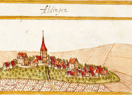 L’Aldinger Schlössle est une ancienne résidence aristocratique située à Remseck am Neckar, dans le quartier de Ludwigsburg dans le Bade-Wurtemberg, en Allemagne. Il était situé sur la Schlößlestraße dans le quartier d’Aldingen, qui porte aujourd’hui son nom, à proximité immédiate de l’église Marguerite. La maison en pierre à plusieurs étages du début du 14e siècle, ainsi que l’église Marguerite, ou les bâtiments qui l’ont précédée, ont formé le château d’Aldingen. En raison d’un incendie dans la seconde moitié du XVIIIe siècle, il ne reste aujourd’hui que l’église et des parties du mur du complexe du château.