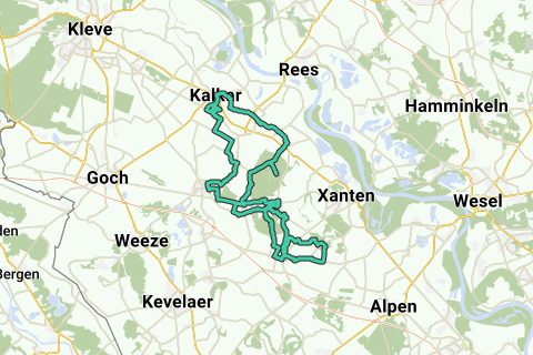Les sections entre les moraines/crêtes de montagne sont reliées par des terres plates (terres agricoles/prairies), ce qui signifie parfois qu'il faut suivre des pistes cyclables à côté de routes principales (c'est le cas entre Kalkar et Kehrum, juste avant Uedem, juste avant et après Sonsbeck et plusieurs centaines de mètres à Labbeck). L'itinéraire passe également par la ligne de chemin de fer de Boxteler, une piste cyclable bien asphaltée qui suit en partie l'ancienne voie ferrée de la ligne Boxteler. Près de la ville de Uedemerbruch, la route est traversée deux fois. L'itinéraire passe aussi par Kalkar avec son joli centre (faites un détour de 50 mètres de l'itinéraire pour visiter la place du marché), mais aussi par certains quartiers résidentiels peu attrayants de Kalkar et le Vossegattweg, qui a en partie une surface routière modérée.