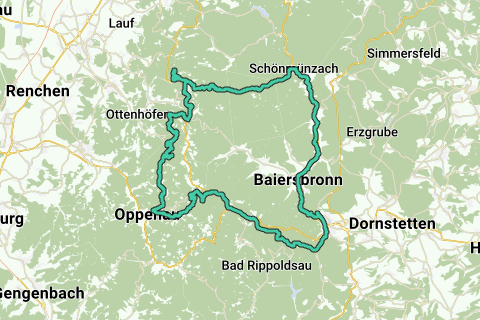 À Oppenau, il faut à nouveau monter vers le crête et cela se fait par l'ascension de la Zuflucht, pas par la route principale, mais par une route très peu fréquentée (qui se termine 2 km sous le sommet à la route principale). Ce n'est pas une montée facile, mais elle est plus agréable et plus simple que par la route principale. Juste avant le sommet, vous avez un beau point de vue en direction de la vallée du Rhin. Ensuite, vous suivez à nouveau la B500 (sur une distance de 4 km, dont 2 km avec une piste cyclable le long de la B500) et à Kniebis, vous empruntez un chemin forestier asphalté en bon état en direction de Freudenstadt. Par la descente raide du Kienberg (également sur une route sans voiture), vous arrivez à Freudenstadt et pédalez jusqu'à l'hôtel-restaurant Waldhotel Louise.