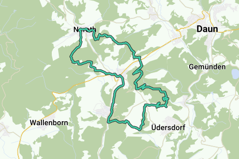 Une randonnée particulièrement attractive avec de beaux paysages, quelques montées difficiles et de magnifiques vues. La Vulkaneifel est aujourd'hui calme et charmante, mais autrefois, c'était un spectacle infernal. Au cours des 65 derniers millions d'années, il y a eu ici de grandes éruptions d'environ 350 centres éruptifs avec une régularité d'environ 10 000 ans. À travers ce massif montagneux géologiquement intéressant se trouve ce sentier de randonnée avec sa nature magnifique, ses collines ondulantes et ses cônes volcaniques marquants. Ici, l'air est encore pur, il y a encore des ruisseaux clairs, des forêts profondes, des vallées silencieuses avec de grands troupeaux de moutons paissant dans les prairies verdoyantes, sans oublier les nombreuses sources thermales qui jaillissent de la terre volcanique. La randonnée se déroule principalement sur des chemins solitaires, où l'on croise à peine quiconque, et où le silence peut sembler troublant, jusqu'à la dernière partie sur le Nerother Kopf (647m), où notre itinéraire coïncide avec le chemin de randonnée plus fréquenté de l'Eifelsteig. Cette randonnée n'a pas de marquages routiers propres, il est donc préférable d'utiliser une carte au 1:25000 avec une boussole ou un GPS. Des places de parking gratuites sont à disposition à Neroth, dans la Ackerstraße, à votre convenance.