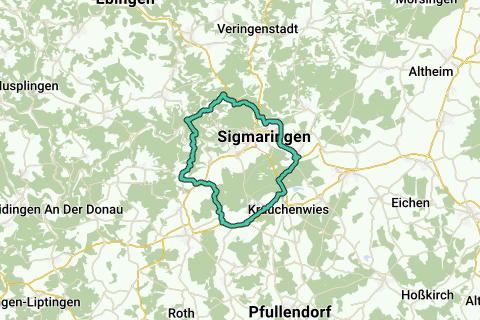 La route de vélo de course commence et se termine à l'hôtel Rinderwirdt à Sigmaringendorf.