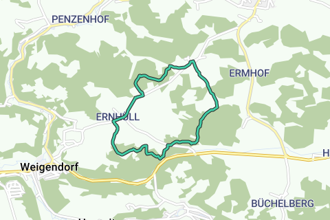 Es-tu à la recherche d'une randonnée relaxante dans la nature ? Le sentier de randonnée en boucle du Point Rouge Ernhüll en Bavière, près d'Erkelsdorf, est fait pour toi. Avec une longueur de 6,6 kilomètres et une difficulté facile, tu pourras profiter de la beauté des environs tout en explorant cet itinéraire bien balisé et en forme de lacunes. En cours de route, tu découvriras des vues pittoresques et l'occasion de vivre la nature à fond. L'itinéraire traverse principalement un environnement naturel calme et est en grande partie non durci et sans voiture. Un autre point fort est le charmant village de Weigendorf, que tu pourras découvrir en chemin. Laisse-toi enchanter par l'atmosphère paisible et recharge tes batteries lors de cette merveilleuse randonnée.