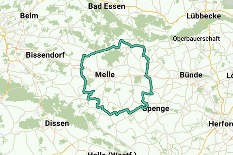 Un itinéraire en pente à travers de Melle. Il y a peu de chances que vous croisiez beaucoup de voiture le long de cet itinéraire. Des cyclistes sportifs passent vite le château (Château de Gesmold) mais celui qui fait halte un instant, profitera de ce bâtiment imposant. Un itinéraire qui vous charmera à coup sûr. En résumé, vous envisagez une randonnée à vélo jolie.