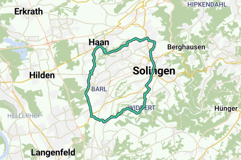 Cet itinéraire à vélo parcourt en grande partie Solingen Il y a peu de chances que vous croisiez beaucoup de voiture le long de cet itinéraire. Presque tout l'itinéraire est légèrement vallonné. Cet itinéraire reçoit certainement 10 sur 10! Je dirais, enfourchez votre vélo et partez!