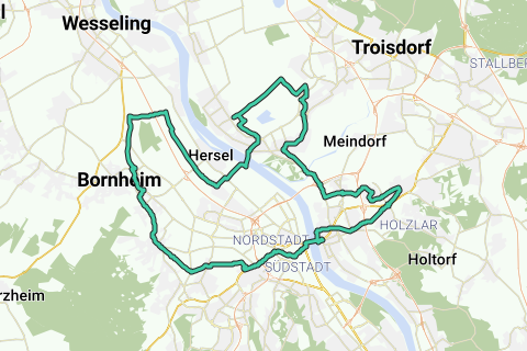 Cet itinéraire peut être atteint par les transports publics. Captez une vue d'un château magnifique lors de cet itinéraire (Château de Bornheim). Un itinéraire pour les chercheurs de la valeur ajoutée! Il y a une curiosité le long de cet itinéraire qu'il ne faut vraiment pas manquer: Ministère fédéral de l'Agriculture.