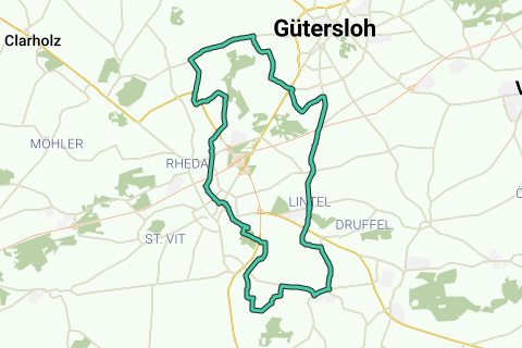 Par ce circuit à vélo vous explorez les plus jolies routes de Rheda-Wiedenbrück. L'itinéraire vous mène le long des plus jolies routes à Procession de Wiedenbrück. Lors de cet itinéraire vous roulez à vélo sur des routes revêtues.