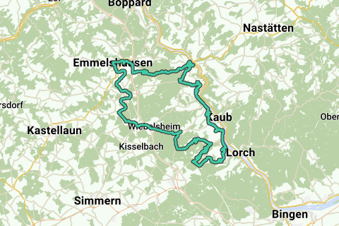 L'itinéraire commence (dans le sens antihoraire) à Emmelshausen et suit la piste cyclable Schinderhannes, une piste cyclable bien asphaltée