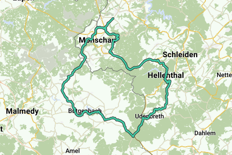 Cette randonnée à vélo à et autour de Montjoie vous donne une représentation fidèle de la ville et ses environs. Reposez-vous dans la nature. Lors de cet itinéraire à vélo vous pouvez profiter de panoramas fantastiques. Il y a une curiosité le long de cet itinéraire qu'il ne faut vraiment pas manquer: Quervennbahn und Vennbahn.