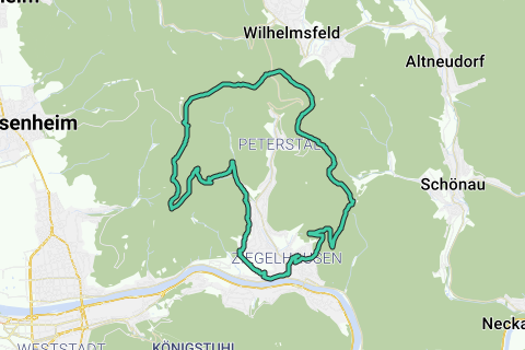 Un parcours vallonné à travers Heidelberg. Ceux qui aiment l'eau trouveront leur bonheur sur ce parcours. La rivière Steinbach obéira à vos moindres désirs. Le parcours passe en partie par des chemins non goudronnés. Ce parcours mérite assurément 9 sur 10 ! Pas d'ennui le long de ce parcours.