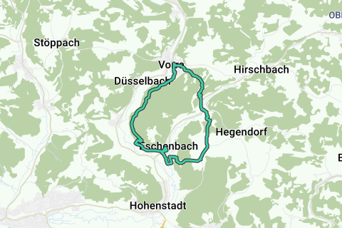 Cet itinéraire suit quelques chemins non revêtus. Peu de chances que vous voyiez beaucoup de voitures le long de cet itinéraire. Plongez dans la nature. Vous pouvez commencer cet itinéraire n'importe où. Le château (château d'Eschenbach) est certainement un bon point de départ (et un point de repos). Cet itinéraire mérite certainement 9 sur 10 points ! Peu à ajouter à cet excellent itinéraire. Prenez votre temps pour cet itinéraire.