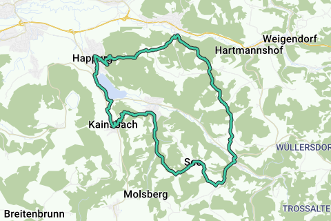 Une route vallonnée à travers Happurg. Peu de chances que vous voyiez beaucoup de voitures le long de cet itinéraire. Profitez de chemins calmes et non pavés pendant cette route. Prenez le temps pour cet itinéraire. Ce parcours mérite certainement 9 sur 10 points ! Presque oublié, n'oubliez pas de vous arrêter au Doggerstollen.