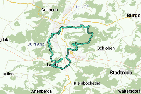 Une belle boucle à travers Jena. Vous pouvez commencer cet itinéraire au musée (Musée phyletique), mais ce n'est pas obligatoire. Cet itinéraire peut être parfois cahoteux. Une partie de l'itinéraire est non bitumée. Ce tour n'est certainement pas plat partout. Peu de choses à ajouter à cet excellent itinéraire.