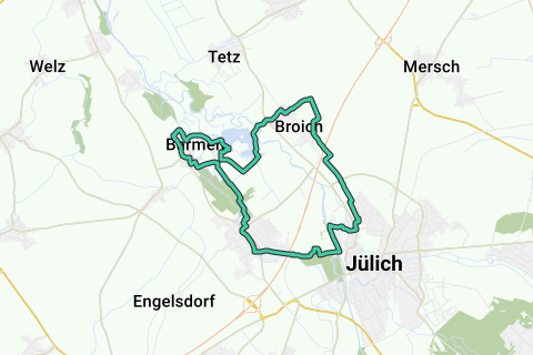 Une belle boucle à travers Jülich. Un itinéraire où vous ne vous ennuierez sûrement pas. Profitez-en à plein ! Peu de chances que vous voyiez beaucoup de voitures le long de cet itinéraire. Cet itinéraire suit quelques chemins non pavés.