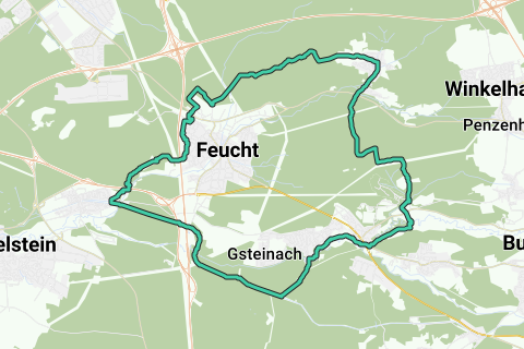 Cette route suit quelques chemins non pavés. Peu de chances que vous voyiez beaucoup de voitures le long de cet itinéraire. S'arrêter certainement au 1. SC Feucht. Profitez-en au carré !