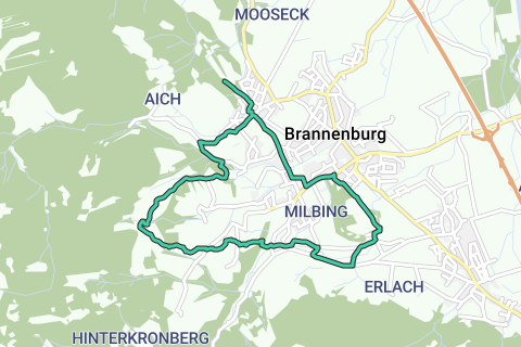 Enchanté de faire votre connaissance, Brannenburg. Cet itinéraire peut parfois être cahoteux. Une partie de l'itinéraire est non bitumée. Peu de chances que vous voyiez beaucoup de voitures le long de cet itinéraire. Vous pourrez certainement faire une pause à St. Margarethen. Vous pouvez commencer cet itinéraire n'importe où. L'église (Assomption de Marie) est cependant certainement un bon point de départ.