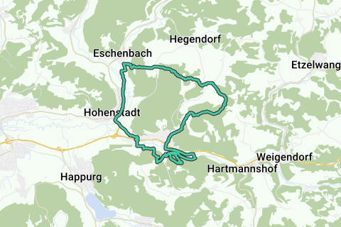 Ravi de faire votre connaissance, Pommelsbrunn. Ce ne serait pas un luxe exagéré si vous vous arrêtiez un moment à un café en plein air le long de cet itinéraire. Ça va être dynamique ! Peu de chances que vous voyiez beaucoup de voitures le long de cette route. Profitez de chemins calmes et non pavés pendant cet itinéraire. Un parcours où vous ne vous ennuierez certainement pas. Il n'y a pas énormément de tavernes où vous pouvez boire quelque chose, mais il y en a quelques-unes. Pendant cet itinéraire, vous verrez un magnifique château (le Château Eschenbach).