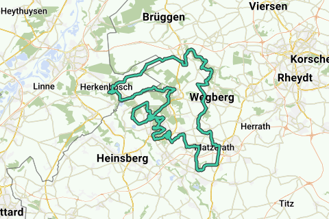 À ce hameau, vous traversez en direction de l'Allemagne et pédalez autant que possible sur des routes de campagne tranquilles en direction d'Erkelenz (Doverhahn), en franchissant la vallée du Swalm à travers un terrain légèrement vallonné. Les routes plus fréquentées et les pistes cyclables le long des routes principales sont évitées autant que possible. Après avoir traversé la vallée du Swalm, vous entrez dans des terres agricoles à une altitude de 70 à 100 mètres.