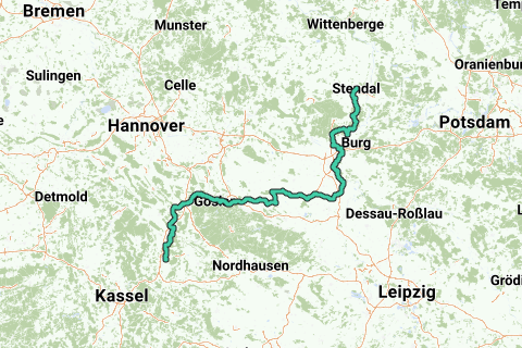 Route de pèlerinage pour vélos de course entre Stendal et Göttingen. Les villes suivantes se trouvent sur l'itinéraire : Stendal, Magdebourg, Bad Lauterberg, Goslar, Northeim, Göttingen.