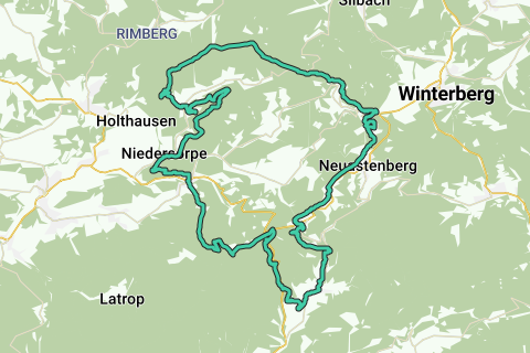 Cet itinéraire de VTT commence à l'hôtel Winterberg et traverse trois vallées au sud et à l'est de Winterberg. À la fin, le parcours de Hoheleye suit le Rothaarsteig, un chemin de 154 km à travers les montagnes de Rothaar.