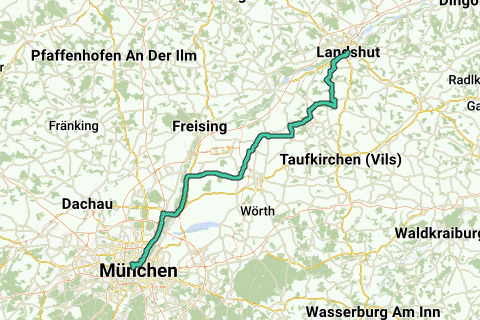 Cet itinéraire à moto vous conduit de Munich à l'église Saint-Martin de Landshut, le plus haut clocher en brique du monde. Il mesure 130,6 m de haut. La tour a été travaillée pendant 55 ans (achevée en 1500).