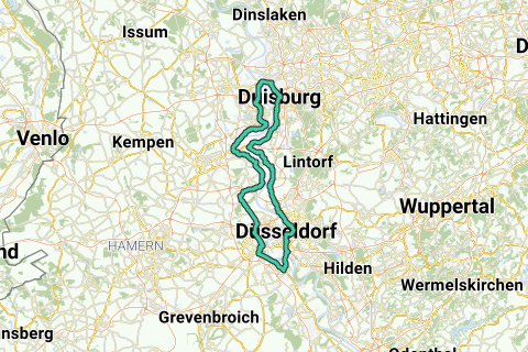 Ce tour en moto commence à Düsseldorf et passe par la rive droite du Rhin jusqu'à Duisbourg. Le retour se fait par la rive gauche. Cet itinéraire est idéal pour relier les deux villes de la région de la Ruhr lors d'une balade à moto. Il a une longueur totale de 95 km.