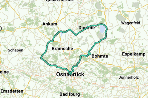 Osnabrück est la deuxième plus grande ville du Niedersachsen. C'est une ville universitaire. Ce voyage à moto vous fera traverser la ville et ses environs. L'itinéraire commence à Osnabrück et se dirige ensuite vers le nord le long du Dümmer et de l'Alfsee. Le parcours fait 125 km de long.