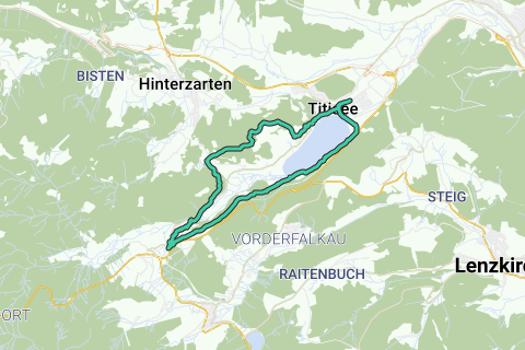 Cette randonnée passe d'abord le long de la rive sud du lac à travers le centre animé de Titisee, en contournant le camping Sandbank sur l'ancien itinéraire du Westweg jusqu'à la gare de Bärental, passant par Behabühl jusqu'à la Löffelschmiede, puis jusqu'à Heizmannshöhe et, sur le nouvel itinéraire du Westweg, retourne à Titisee.