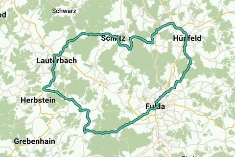 Avec cette balade à moto, vous vous dirigez vers les environs de Fulda. Vous visiterez des endroits comme Hünfeld, Lauterbach et Burghaun. Préparez-vous à une variété de paysages de forêts et de champs. Le parcours de 100 km commence et se termine dans la belle ville de Fulda.
