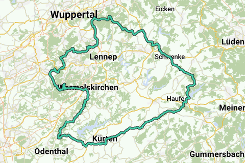 Cette route à moto vous mène le long des routes paisibles, des champs vallonnés et des forêts verdoyantes, pour lesquels l'oasis de calme située au sud de Wuppertal est connue. Idéal pour échapper à la vie trépidante de la ville.