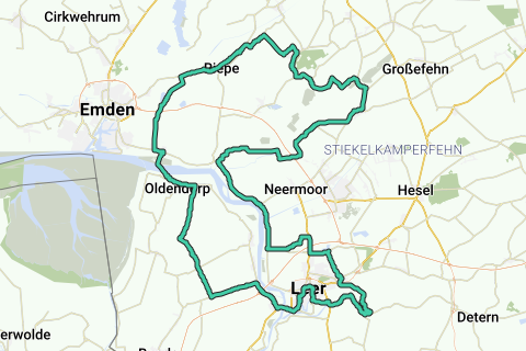 L'itinéraire commence et se termine près de la gare de Leer et vous emmène le long des routes plates et tranquilles pour lesquelles la région est si connue. Les belles prairies vertes, les villages idylliques et les nombreuses églises séduiront sans aucun doute tout le monde.