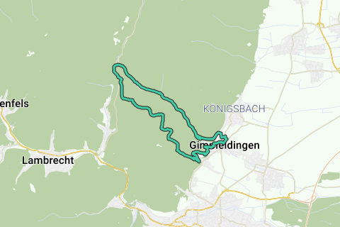 Cette randonnée commence dans le village de Gimmeldingen et est idéale pour ceux qui souhaitent faire une promenade rapide en forêt. L'itinéraire suit les collines et traverse la vallée de Mussbach. Profitez-en ! La distance totale est de 14 km, des places de parking sont disponibles au point de départ.