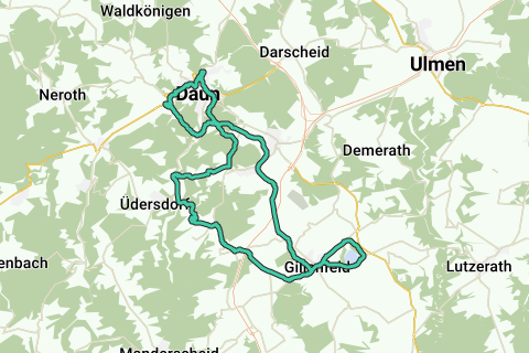 Cette piste cyclable de loisirs commence et se termine dans la ville de Daun. Vous pédalez à travers le magnifique paysage de la Vulkaneifel. Sur le chemin, que vous empruntez en passant par Buts, il s'agit de lacs d'origine volcanique. Dans l'un des nombreux villages, vous pouvez bien manger ou boire. Une grande partie du parcours se déroule sur une ancienne voie ferrée sans circulation, ce qui rend le trajet encore plus amusant !