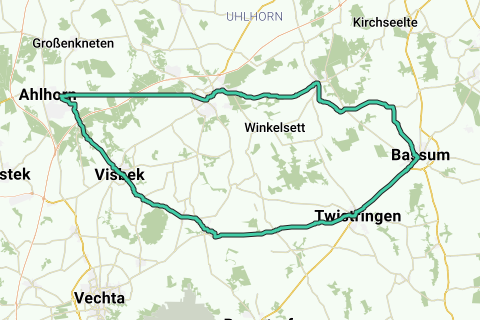 Cette magnifique route de vélo de course vous emmène à travers le parc naturel de Wildeshausen Geest. Vous traversez un paisible paysage rural, passant par de beaux villages où vous pouvez vous reposer, manger ou boire quelque chose. La route mesure un total de 83 km et est parfaite pour ceux qui aiment pédaler calmement dans la nature.