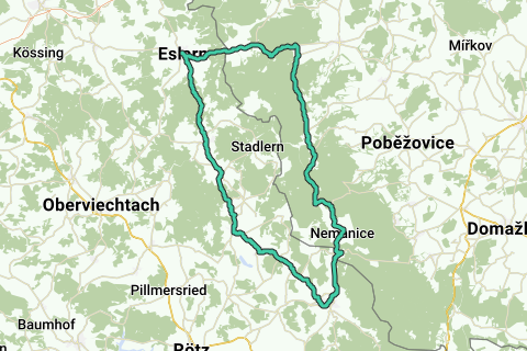 Prenez votre vélo de course et explorez la belle forêt de l'Oberpfalz. L'itinéraire commence et se termine à Eslarn. Le parcours traverse le parc naturel, on roule presque constamment à travers les vastes forêts, à la fois sur le territoire allemand et sur le territoire tchèque. La distance totale de l'itinéraire est de 71 km.
