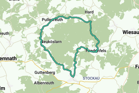 Ce parcours de 38 km commence et se termine dans le village de Friedenfels. Le parcours vous emmène à travers la magnifique et vaste forêt de pierres. Une grande partie du trajet est sans circulation, ce qui augmente le plaisir. Attendez-vous à un beau et paisible parcours à travers la beauté naturelle de la forêt de pierres !