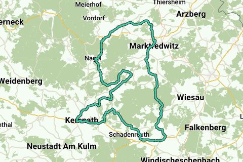 Cette randonnée à moto vous emmène à travers les vastes forêts de Steinwald. Vous passerez par de jolis villages où vous pourrez manger ou boire quelque chose. Attendez-vous à une belle balade à travers la nature paisible. Amusez-vous bien !