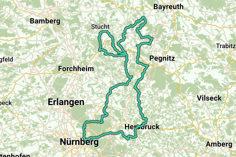 Cette route en moto vous emmène à travers la magnifique nature de la Suisse franconienne. Les panoramas, les vallées et les forêts sont phénoménaux et ne manqueront pas d'attirer tout le monde. Le début et la fin se situent dans la région de Nuremberg.