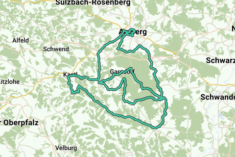 La Forêt des Cerfs est une grande forêt située au centre du Parc Naturel de la Forêt des Cerfs. Cet itinéraire à moto vous conduit à travers cette région enchanteur et vous montre pourquoi elle est devenue un parc naturel. Le départ et l'arrivée se font à la sortie Amberg-Ouest.