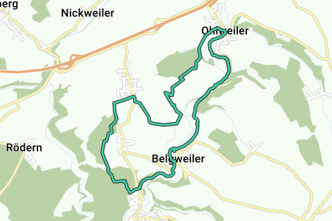 Profitez du paysage à Belgweiler. Ce ne serait pas un luxe exagéré si vous vous arrêtiez un moment dans un café en plein air le long de cette route. Le sentier de randonnée commence au parking. Ça va être sportif ! Ce parcours passe par des chemins non pavés. Par temps sec, ils sont cependant en excellent état.