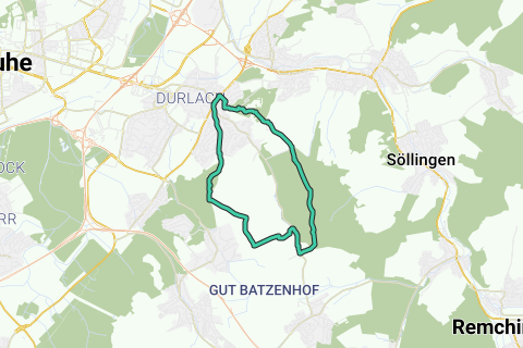 Itinéraire d'entraînement à Karlsruhe (avec des chemins non pavés)