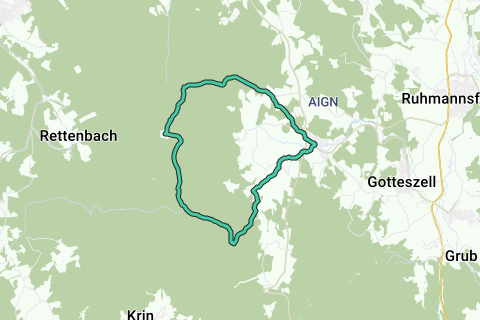 Une belle boucle à travers la Forêt bavaroise. Cet itinéraire est un peu aventureux, car vous roulez à vélo le long de chemins non goudronnés. En résumé : à recommander ! Le sentier de randonnée commence à l'église.