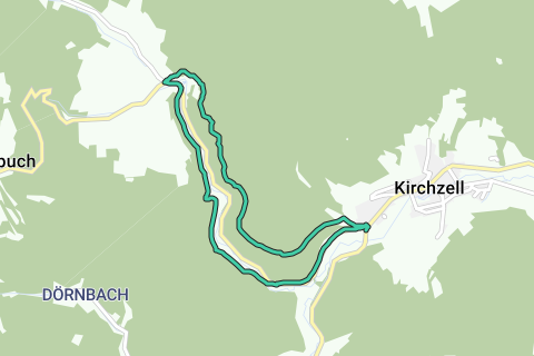 Cet itinéraire suit différents chemins cyclables à travers Kirchzell. L'itinéraire passe en partie par des chemins non pavés. Vous trouverez de l'asphalte, du béton et de petits chemins le long de cet itinéraire. Le sentier de randonnée commence au parking.