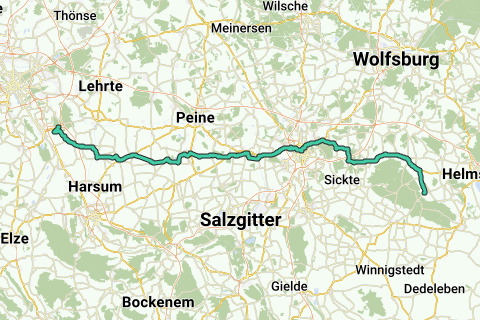 Comme l'itinéraire original longeait à nouveau le canal Mittelland et devenait ainsi ennuyeux, j'ai fait recalculer cet itinéraire par Routeyou. Juste avant le point final, cet itinéraire contourne également une pente raide. Le parcours est assez long, mais le niveau de difficulté est moindre car les routes sont meilleures. En chemin, on passe par Braunschweig. Près de l'itinéraire se trouve le château de Dankwarderode et d'autres attractions.